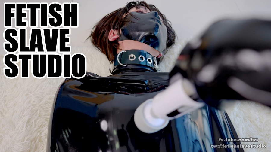 FSS: Fetish Slave Studio, ラバー・レザー柵に四肢を固定されて、なおかつ目隠しと猿轡をされ、完全にキキ専用のラバードールと化したカカ。オイルを塗られてぬめりを増した身体は、キキの愛撫でさらに妖しく蠢く。電マを太ももに固定され、ラバーフードとヘ ...